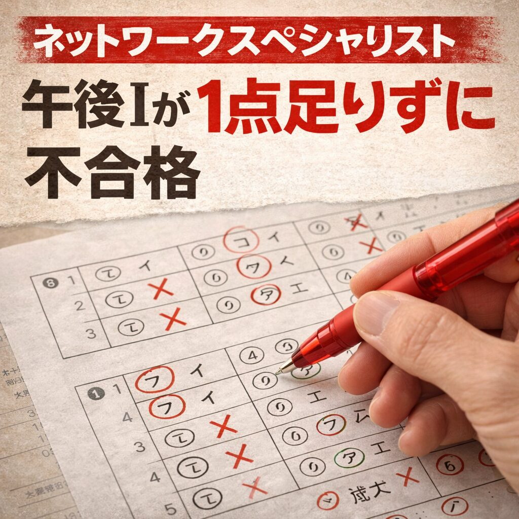 令和7年度ネットワークスペシャリスト試験を受験し、結果は午後Ⅰで59点という非常に惜しい不合格でした。 ・午前Ⅱ:通過・午後Ⅰ:59点(不合格)・午後Ⅱ:手応えあり 試験の帰り道は合格したと確信していたので、結果を見た際は信じられない気持ちで、答案... -