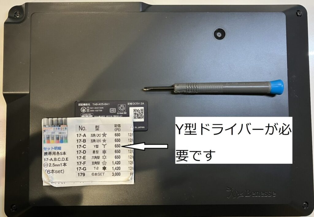 - Y型特殊ドライバー(後ほどご紹介します)