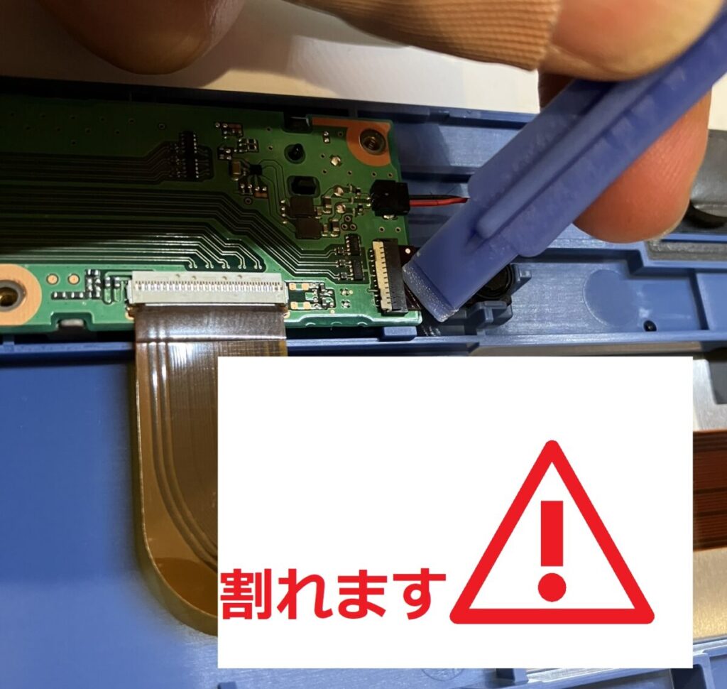 👉 インカメラのフレキ(薄い配線)を外そうとしてコネクタが少し割れました