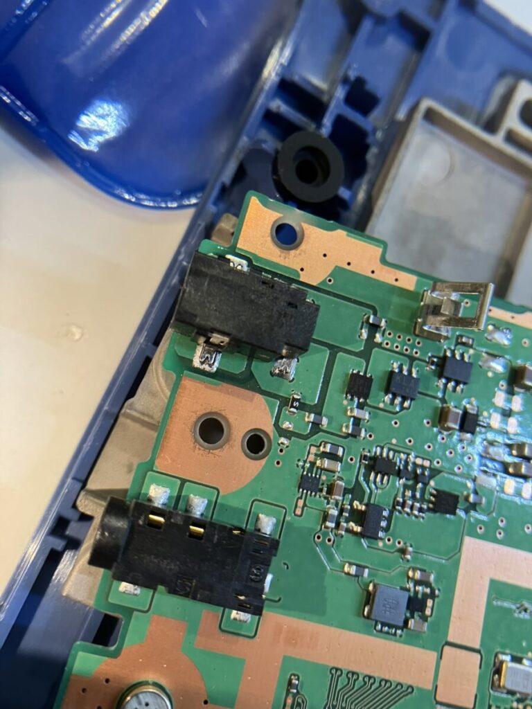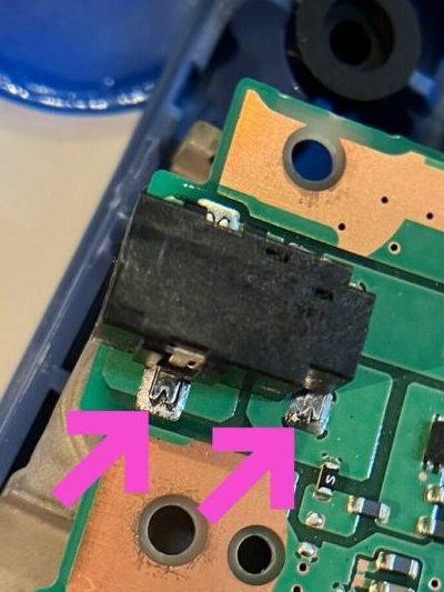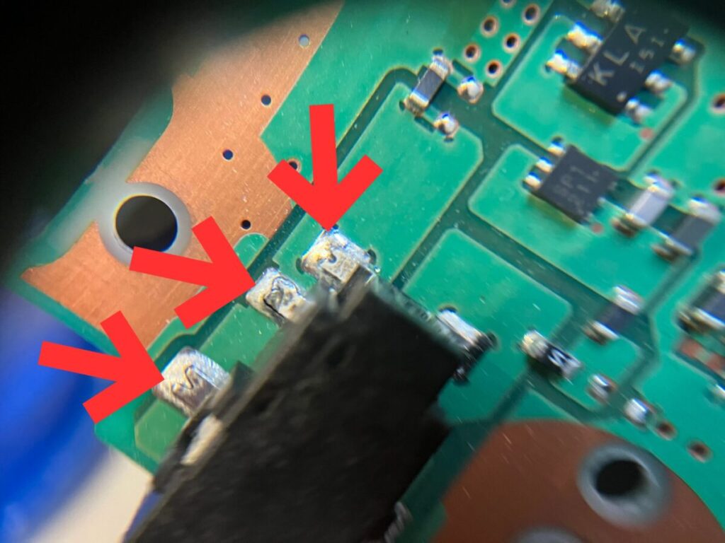 👉 ジャック周辺は金属部分が大きく熱が逃げやすいため、他の部品よりも時間をかけてしっかり温めるのがコツです。 - ハンダ少量追加する