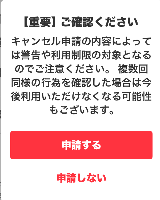 「キャンセル成立後は取引メッセージが利用できなくなります」