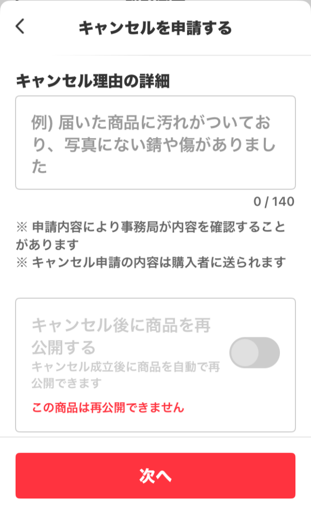 その際、本商品は利益が元々薄いこと、悪い評価をつけられるぐらいなら取引をキャンセルする方が良いと考え、商品に問題があれば返品を受け付ける旨の申し出をしました。