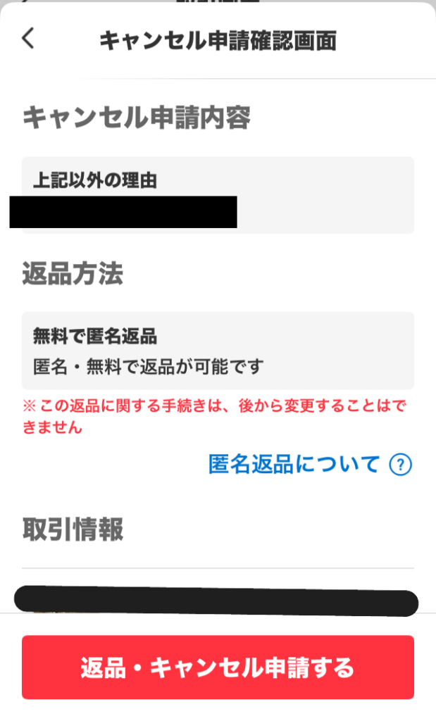 つまり、ここで匿名返品を選んだら後から気軽に変更はできません。