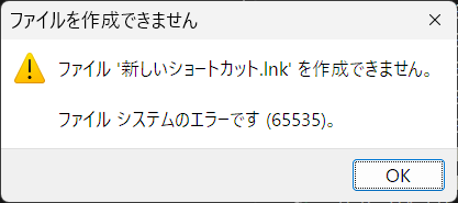 ファイル’新しいショートカット.lnk’を作成できません。
